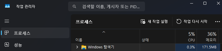 윈도우를 사용하다 보면 작업표시줄이 클릭에도 반응하지 않거나 멈춘 것처럼 보이는 경우가 있습니다. 이런 현상은 프로그램 충돌, 윈도우 탐색기 오류, 또는 시스템 파일 손상 등 다양한 원인으로 발생할 수 있습니다. 아래 방법을 순서대로 시도해 보면 대부분 문제를 해결할 수 있습니다. 윈도우 탐색기 재시작작업표시줄은 '윈도우 탐색기(Explorer.exe)'가 관리합니다. 탐색기를 재시작하면 간단하게 문제를 해결할 수 있습니다.Ctrl + Shift + Esc 키를 눌러 '작업 관리자(Task Manager)'를 엽니다.프로세스 탭에서 'Windows 탐색기'를 찾아 선택합니다.우측 하단의 '다시 시작' 버튼을 클릭합니다.단, Windows 10까지는 작업 관리자에서 'Windows 탐색기'로 표시됩니다...